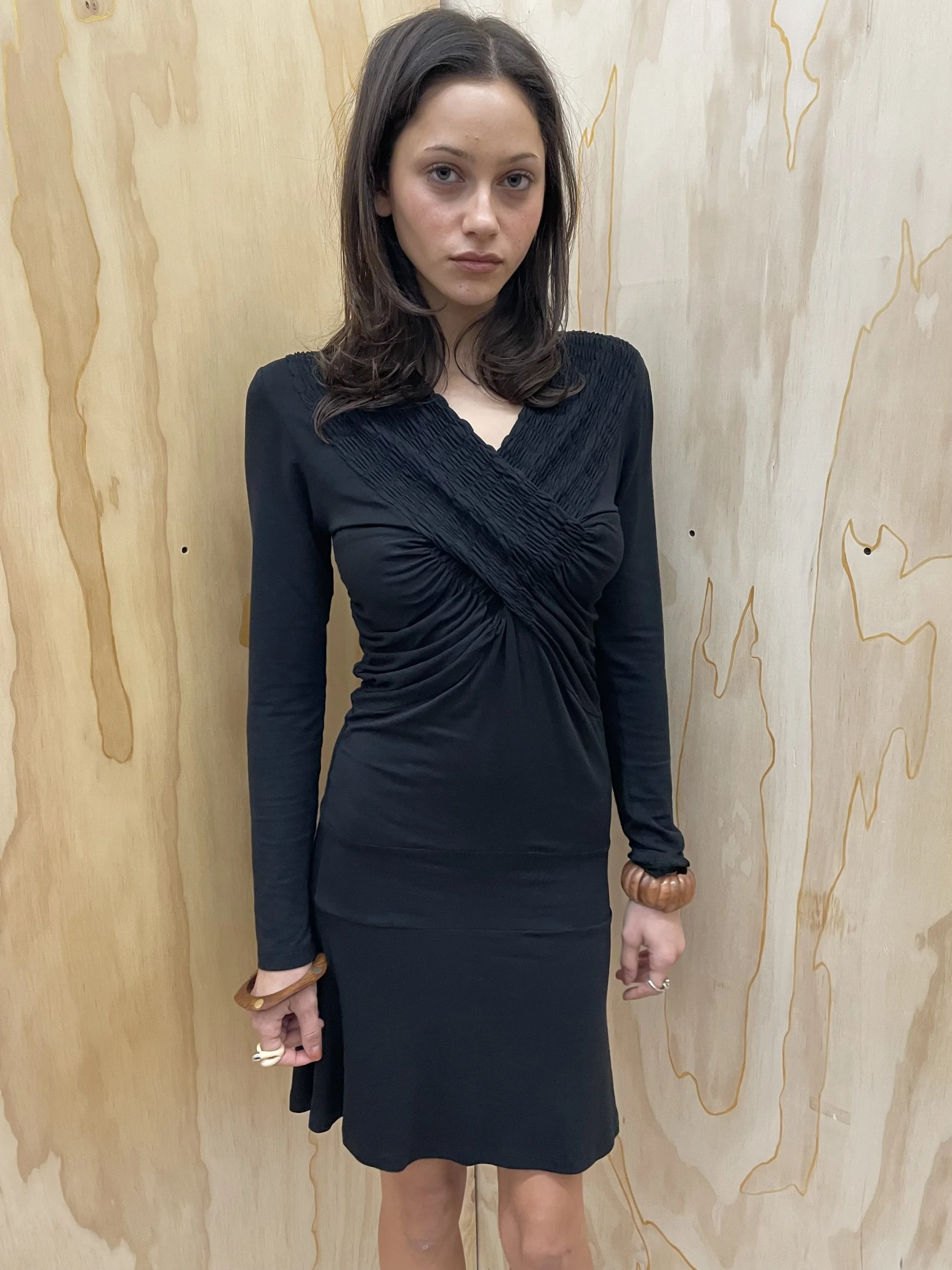 Mini Black Dress with Bow Sleeves and Back